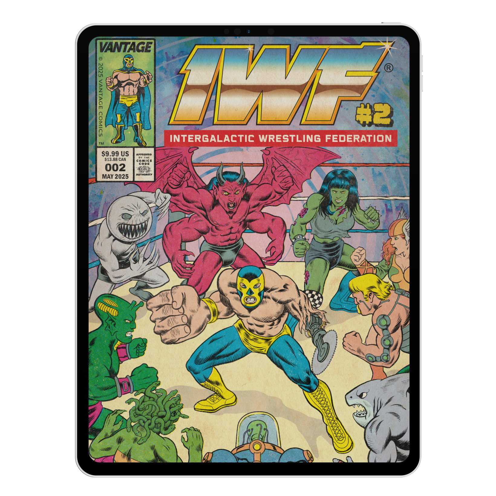 With over 60 pages of full-color, retro-inspired artwork, this issue delivers nonstop combat, sci-fi spectacle, grotesque villains, and wild plot twists that fans of vintage comics and underground wrestling will love.